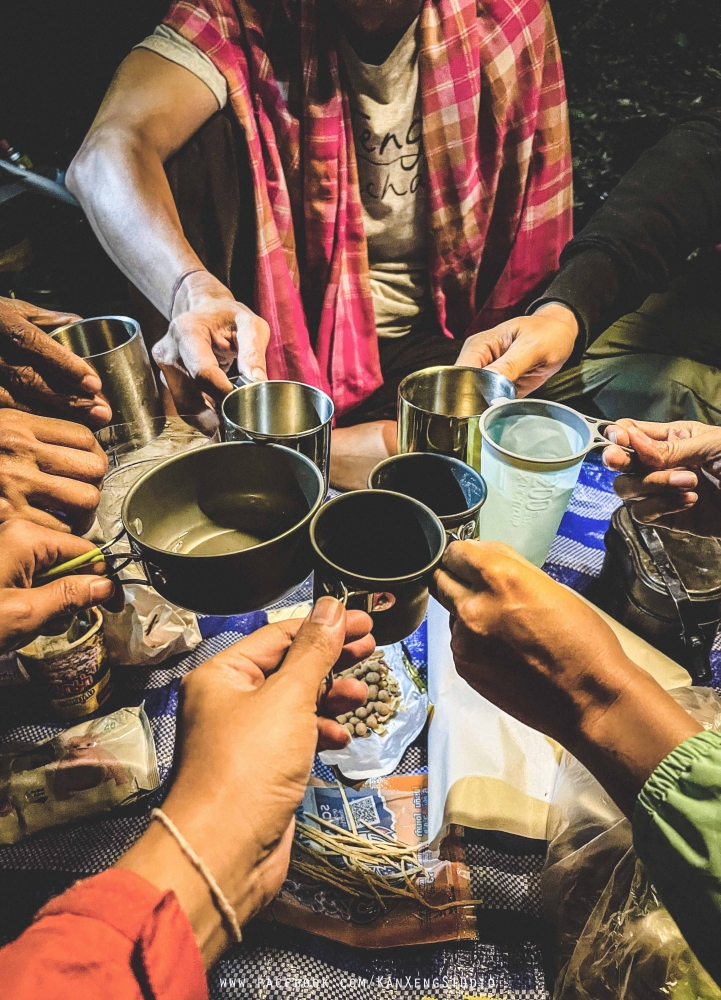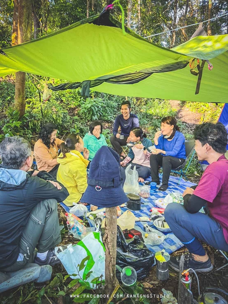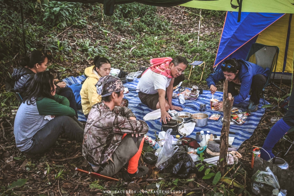 >> ช่วงเวลาที่ชอบที่สุดคือช่วงกินข้าวเย็น ชอบเวลาที่ได้นั่งคุยกัน แซวกัน ได้นั่งเมาส์กับเพื่อน ๆ พี่ ๆ ในกลุ่ม มันเป็นความรู้สึกผ่อนคลายร่างกายและความรู้สึกที่สุดแล้ว หลังจากที่พวกเราต้องเดินแบกเป้ แบกน้ำ แบกของกินกันเอง แบกทุก ๆ อย่าง ตามกำลังของร่างกายแต่ละคนจะแบกกันไหว พอได้โยนเป้ทิ้งจากหลังแล้วเหมือนได้เป็นไทยอย่างไงไม่รู้ 555++ เอ๊ะ! หรือรู้สึกไปเองคนเดียว...