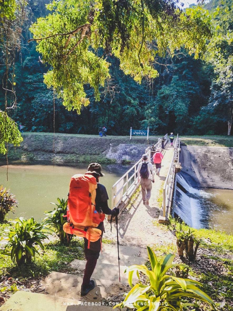 >> วันแรกทุกคนจะมารวมตัวกันที่ ฝายน้ำย่าง หน่วยส่งน้ำและบำรุงรักษาที่ 2 และจะมีเจ้าหน้าที่จากอุทยานแห่งชาติดอยภูคา มาตรวจเช็คเอกสารของแต่ละกลุ่ม พร้อมชี้แจงรายละเอียดและเส้นทางการเดินเท้า และข้อควรระวังต่าง ๆ สำหรับการเดินป่าและค้างแรม