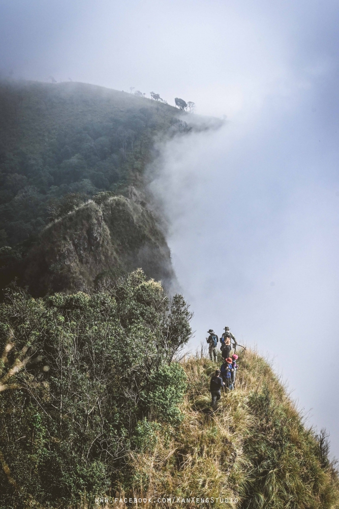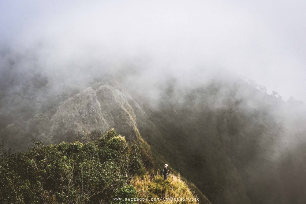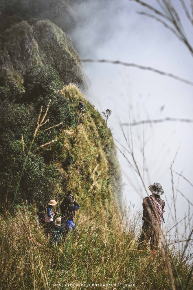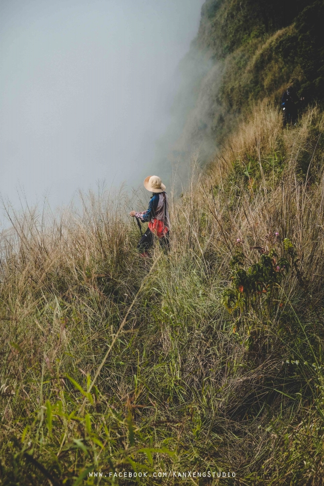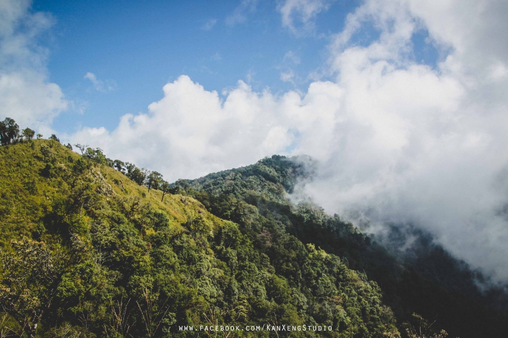 >> "ใกล้ถึงแล้ว" ฮึ! ไม่ใช่ประโยคบอกเล่า แต่เป็นประโยคยอดฮิตที่บรรดาลูกหาบใช้หลอก เฮ้ย! ไม่ใช่ ๆ ใช้ให้กำลังใจนักเดินป่าทั้งหลาย ที่กำลังโดนความเหนื่อยครอบงำและกำลังจะหมดกำลังใจในการเดินต่อ ตอนเราเหนื่อย เราก็อยากโยนทุกอย่างรอบ ๆ ตัวทิ้ง แต่พอไปถึงจุดหมายปลายทาง และได้เห็นสิ่งที่เฝ้ารอที่ปราถนาจะได้เจอ ความเหนื่อย ณ ตอนนั้นหายไปหมดโดยไม่รู้ตัว แต่พอเราหลุดพ้นจากความสวยงามของป่าเขาเราก็จะกลับมาเหนื่อยเหมือนเดิม 555++