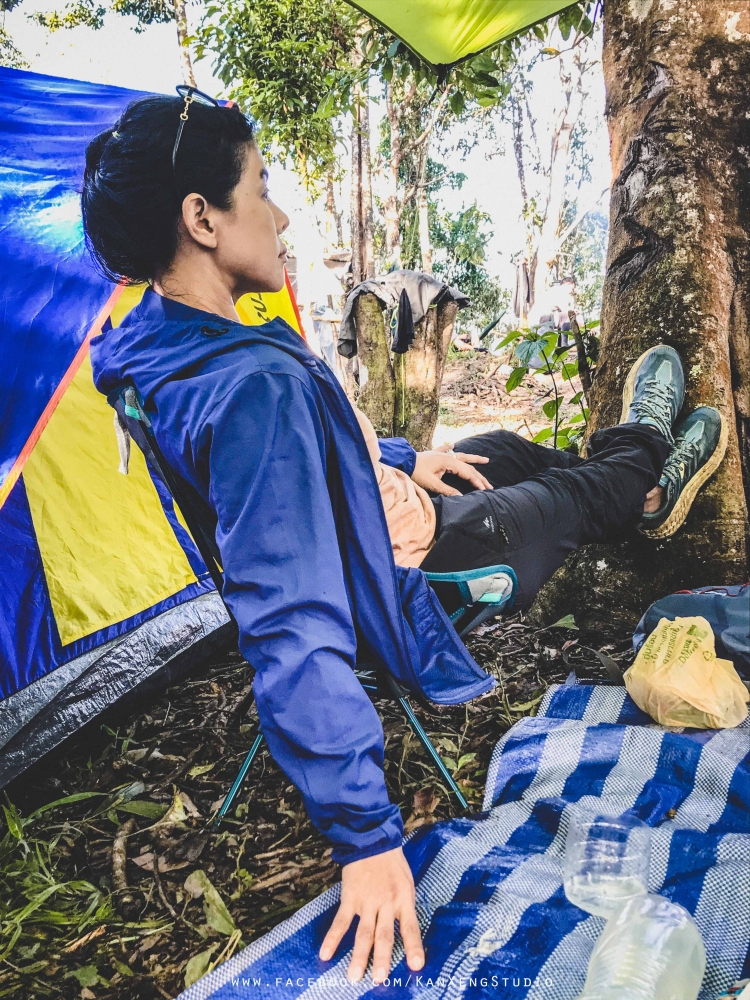 >> ถึงแว๊วววว! จุดพักแคมป์ 1 เดินมาถึงประมาณ 4 โมงกว่า ๆ จุดพักแคมป์มีให้เลือกตั้งแคมป์กัน 3 จุด เป็นบริเวณแบบลานกว้างเวิ้งด้านล่าง 1 จุด และบริเวณสันเขา 2 จุด (ยังไม่ได้ถาง 1 จุดเพราะเป็นช่วงพึ่งเปิดเขา) พวกเราเลือกลานกว้างเวิ้งด้านล่าง กลัวเจอลมแรงไม่อยากนอนแบบโต้ลมเต็นท์สะพือทั้งคืน เดินมาเหนื่อยมากแล้วอยากนอนหลับแบบสบาย ๆ ณ จุด ๆ นี้ ก็สรรหาพื้นที่ตั้งเต็นท์กันได้ตามสบายใครมาถึงก่อนได้เลือกก่อน คริคริ