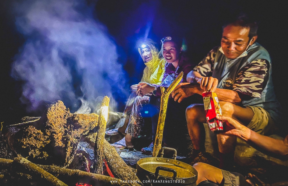 สุ่มรอบกองไฟนั่งเมาส์กับพี่ ๆ คนนำทาง และพี่ลูกหาบ
