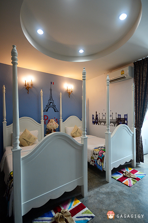 วันนี้ห้องที่เราพักคือ ห้องฝรั่งเศสค่ะ บรรยากาศภายในห้องกว้างพอสมควร ข้าวของต่างๆก็เน้นเป็นแนวฝรั่งเศสทั้งนั้น เตียงนอนนุ่มสบายๆดี