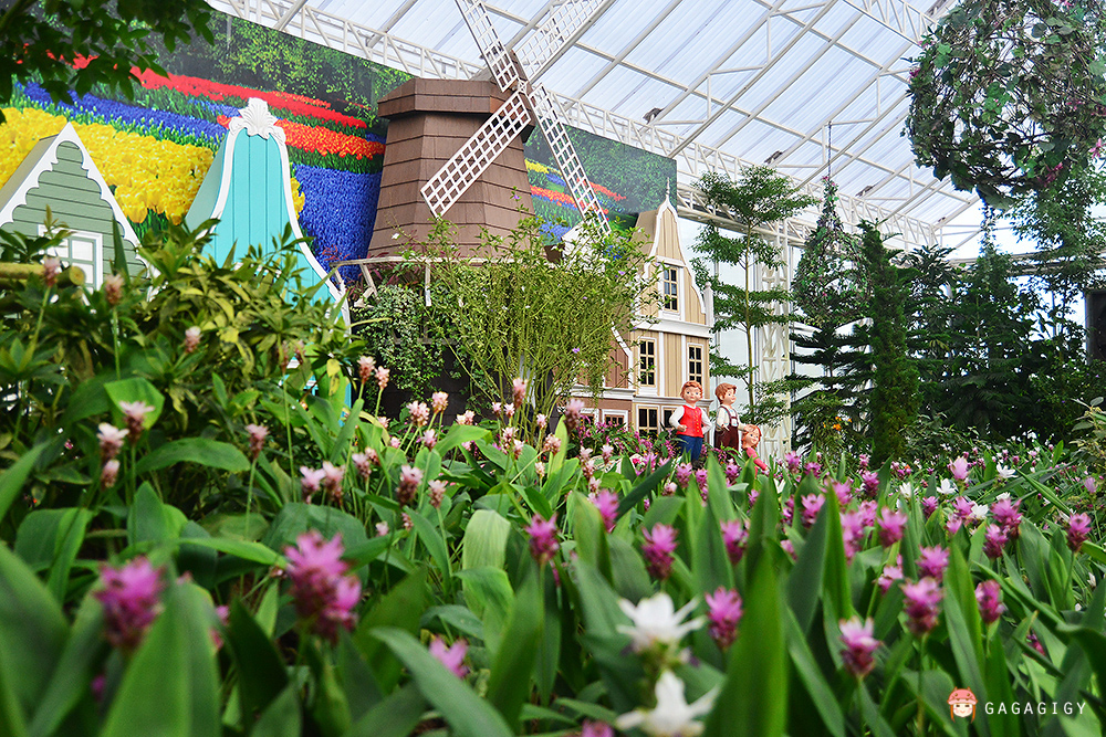 ช่วงที่เรามาชมเป็นช่วงของการแสดงดอกกระเจียวค่ะ ซึ่งดอกกระเจียวของที่นี่จะมีหลากหลายสายพันธุ์มาก ภายในโรงเรือนตกแต่งสวยงามสไตล์ฮอลแลนด์