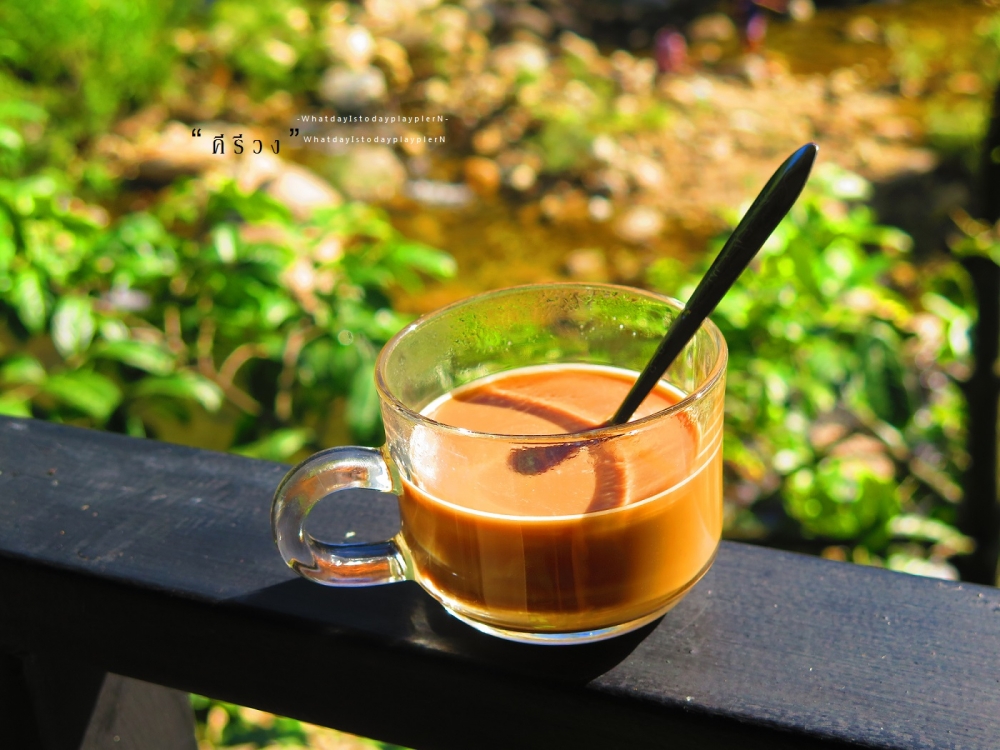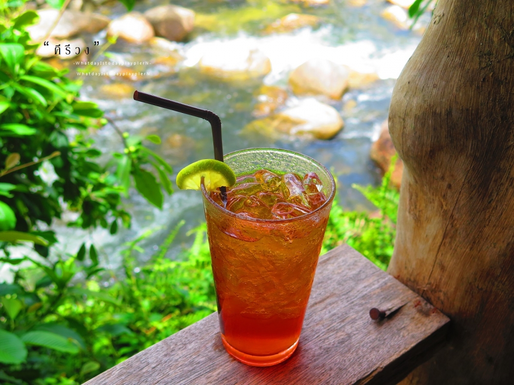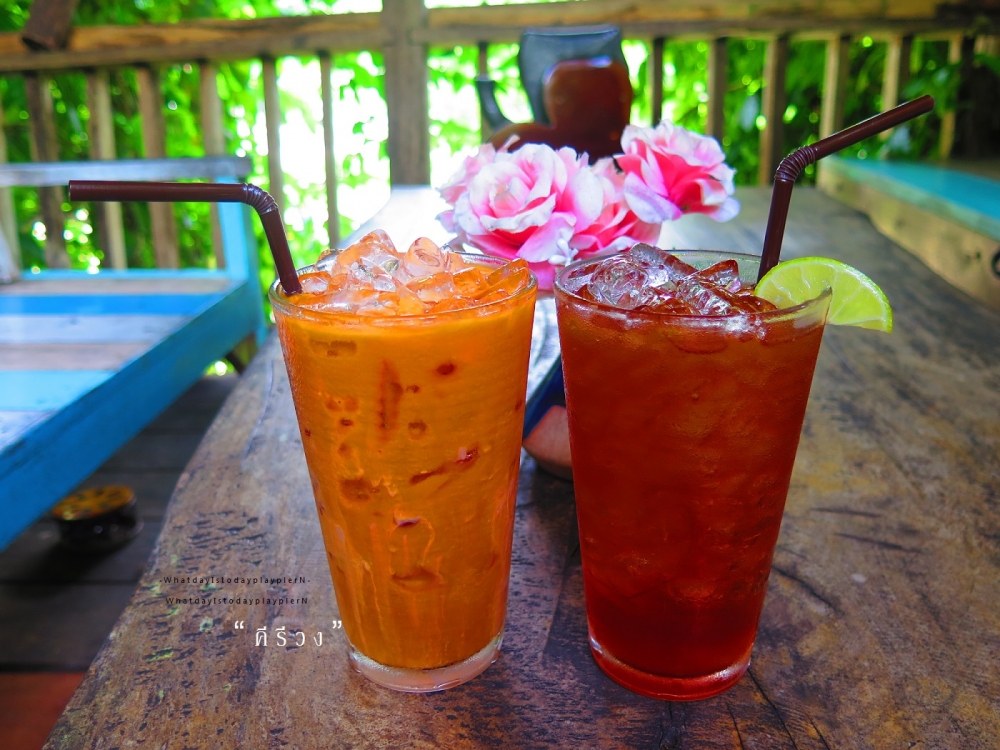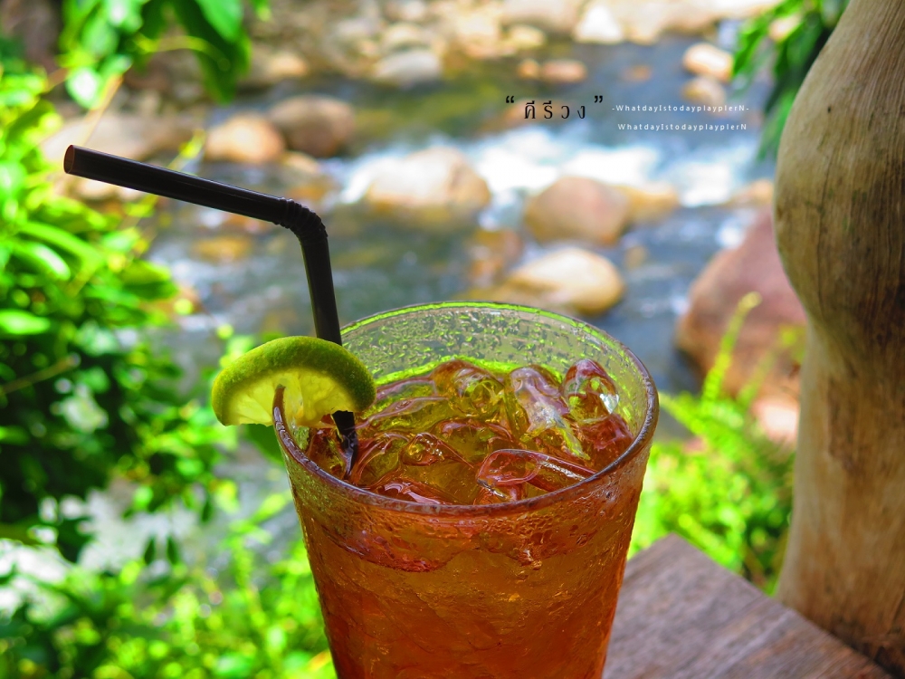 มาถึงล้าววววว คีรีวง ริเวอร์วิว สั่งชาเย็นมาดื่มแก้ร้อนค่ะ ...