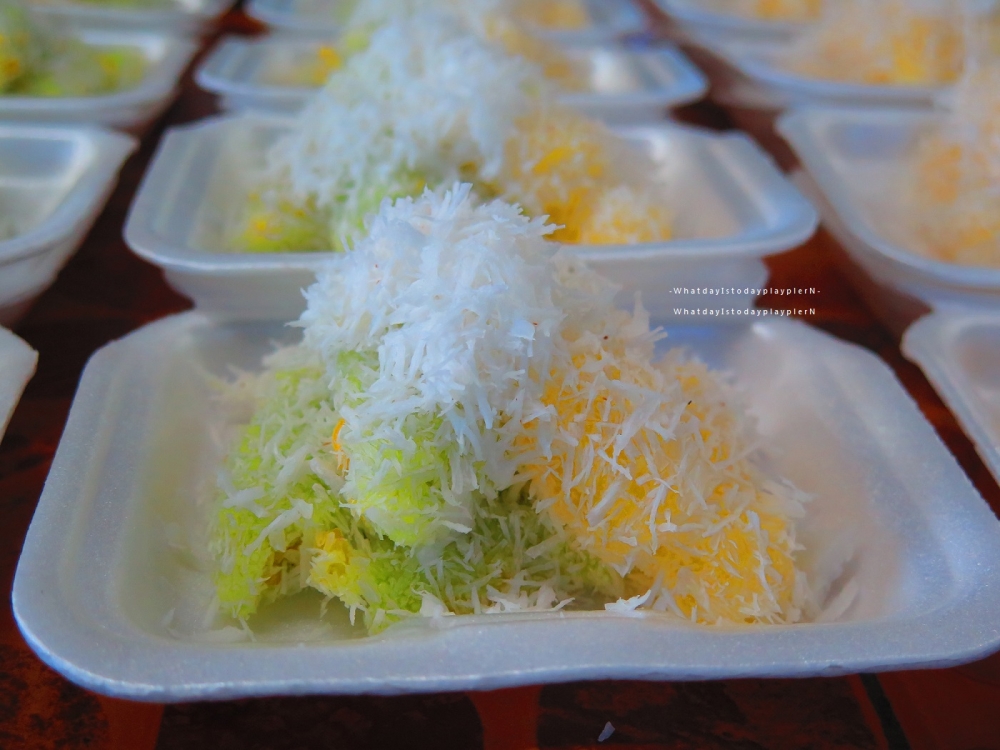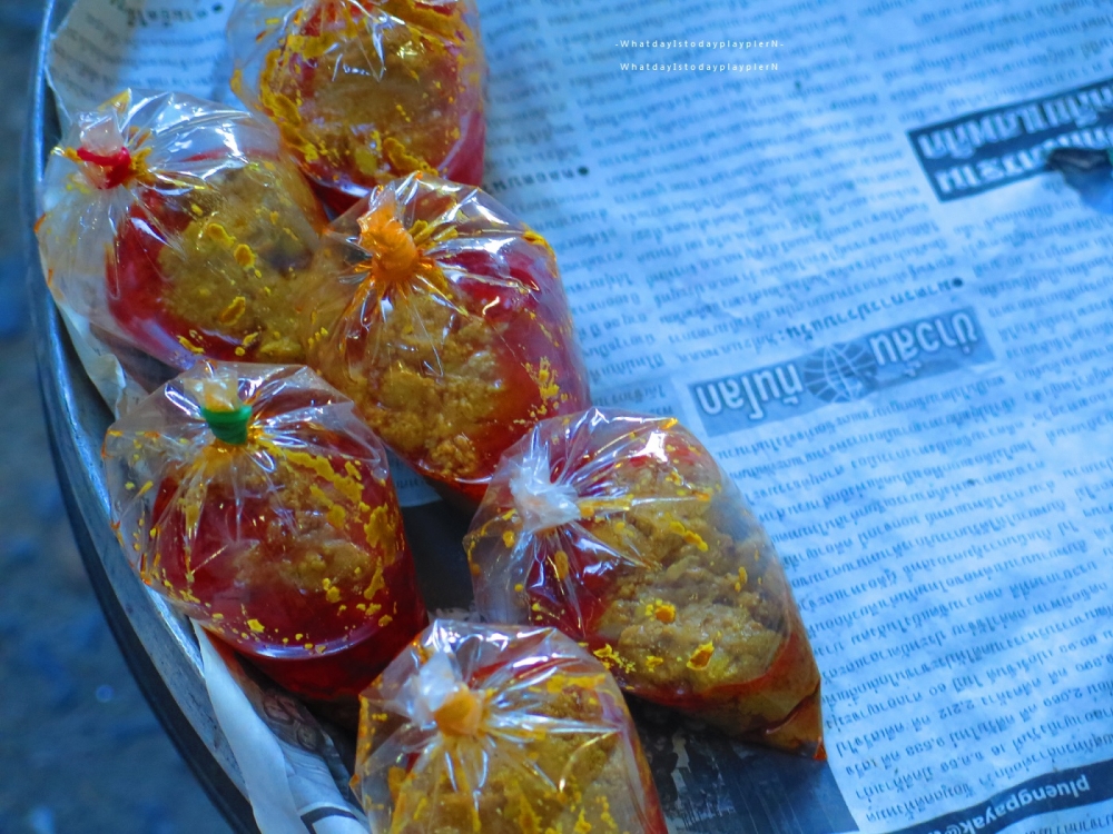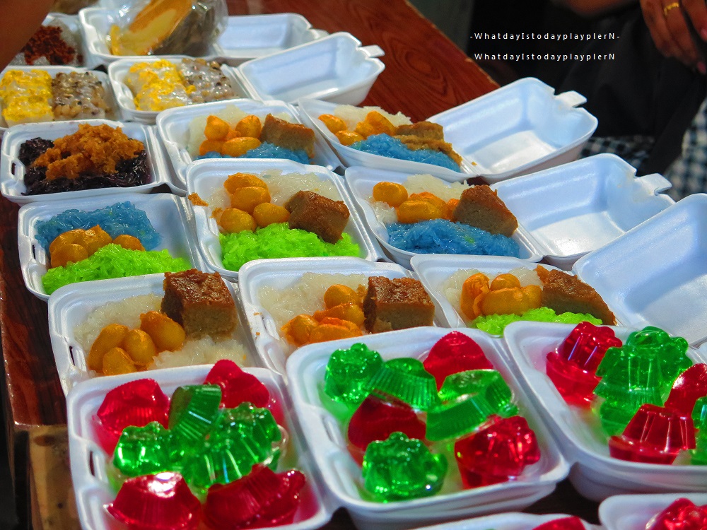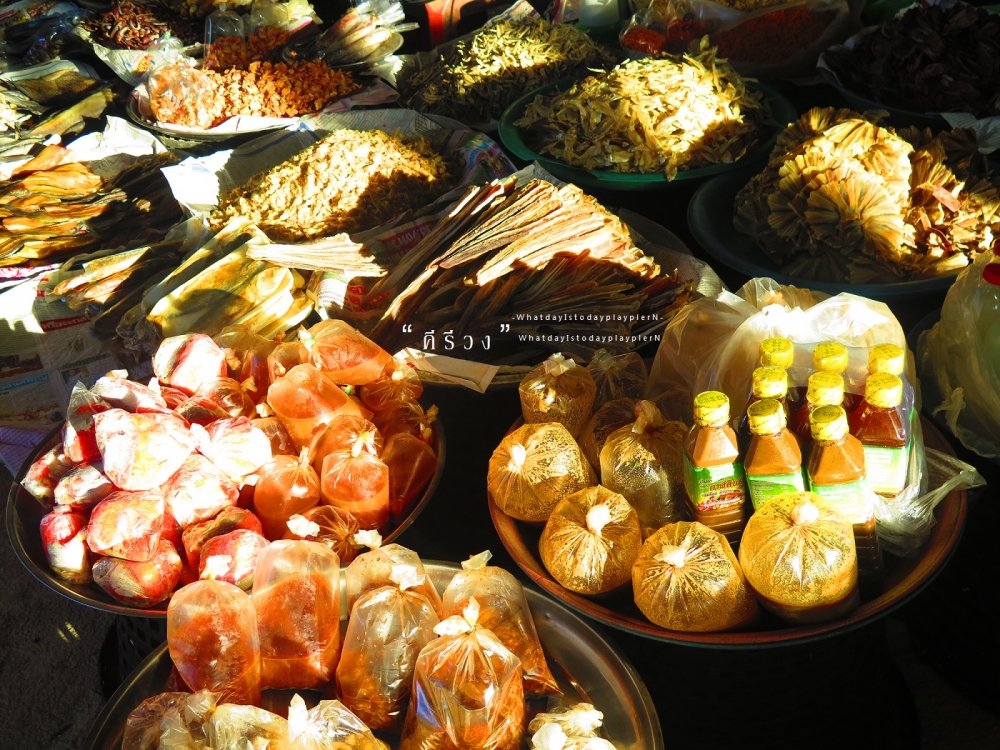 ตลาดมีของกินมากมาย ทั้งของคาวของหวาน ส่วนราคา ถ้าถามว่าแพงมากมั้ย ก็ไม่มากนะคะ 5 บาท 10 บาท ก็มี แถมอร่อยด้วย เช่นข้าวยำน้ำบูดูร้านคุณยาย โอ้ยยย คลุกหมดจานเลยฮ่ะ (^^)