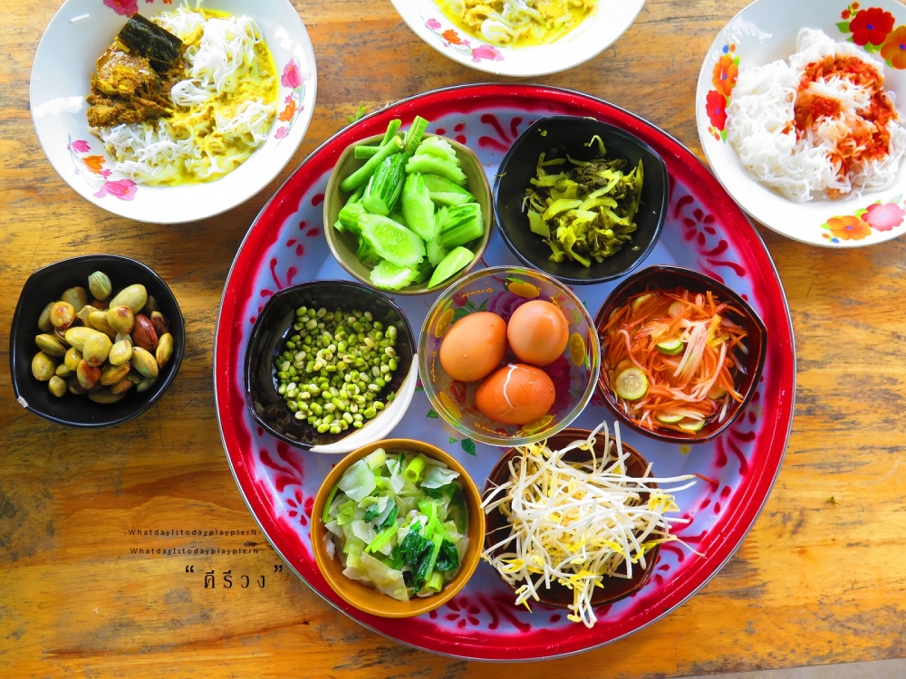 มีสะตอ ของโปรดดด ขนมจีนน้ำยาเข้มข้น ฟักทองเชื่อมก็โคตรอร่อยยย แถมมีหนุ่มน้อยหล่อเหลาคอยส่งยิ้มมาให้อีก ^^