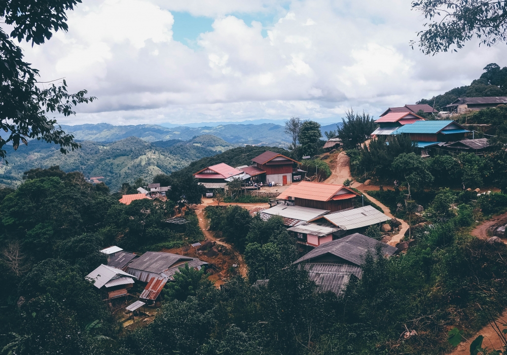 หมู่บ้านแม่จันใต้ ตั้งอยู่บนทิวเขาที่กั้นระหว่างเชียงรายกับเชียงใหม่ ตำบลท่าก๊อ อำเภอแม่สรวย จังหวัดเชียงราย หลีกหนีความวุ่นวายจากตัวเมืองเชียงรายมากว่า 90 กิโลเมตร ความสุขและความสงบเกิดขึ้นที่นี้ ชุมชนเล็ก ๆ ที่เต็มไปด้วยธรรมชาติที่โอบล้อม และวัฒนธรรมเผ่าอาข่าที่สมบูรณ์แบบ พื้นที่กลางหุบเขาเล็ก ๆ แห่งนี้ แต่เดิมบรรพบุรุษอพยพมาจากทางตอนใต้ของจีน รวมตัวกันอยู่เป็นชุมชนใหญ่ แต่ด้วยพื้นที่เล็กและจำกัด รวมไปถึงมุมมองทางศาสนาที่ต่างกัน ทำให้ต้องแยกย้ายและจัดตั้งถิ่นฐานกันใหม่