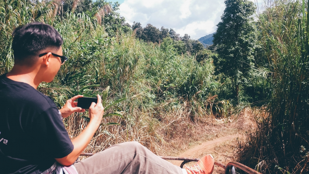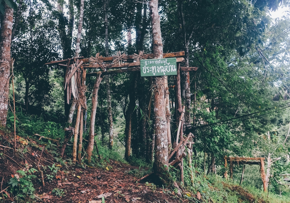 เราเช่ามอไซค์ จาก Bikky ร้านอยู่ตรง บขส เชียงราย เริ่มเดินทางจากจุดนี้ไปยังเส้นถนนหมายเลข 118 จนถึงปากทาง วัดแม่ต๋ำ จึงเลี้ยวเข้ามาถนนทางหลวงชนบท 3063 เอาล่ะ.. จากตรงนี้ไป คือเส้นทางที่ไม่รู้จบ นับจากตรงปากทางเข้าแยกนี้ไปอีก ประมาณ 23 กิโลเมตร เส้นทางคดเคี้ยวและชันพอสมควร แต่ถ้าจะมาด้วยรถสาธารณะ ก็จะมีรถที่จอดอยู่ บขส. มาถึง ปากทางแม่ต๋ำ และต้องต่อรถจากแม่ต๋ำ ไปยังหมู่บ้านห้วยน้ำขุ่น รถสาธารณะ หรือ รถส่วนตัว จะไปสุดทางแค่นี้ ต้องโทรให้ชาวบ้านข้างในมารับ เพราะเส้นทางจากห้วยน้ำขุ่นเข้าไปอันตราย และเป็นลูกรัง จะเข้าได้แค่รถ 4x4 หรือจะวัดดวงกับมอไซค์ ก็จะทุลังทุเลไปหน่อย
