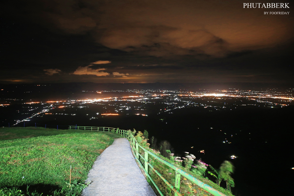 แสงไฟถนน แสงไฟบ้านเรือนด้านล่างเห็นชัดเมื่อฟ้าเริ่มมืด